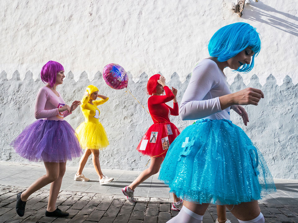 El carnaval, la playa, la calle. Tres escenarios, una misma historia. La vida se celebra a plena luz, con cada paso, con cada encuentro, con cada instante suspendido. Y en medio de todo, la visión de Andrés César: atenta, colorida, curiosa, atrapando lo fugaz, convirtiendo lo efímero en recuerdo.