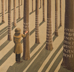 Este relato de la pintura induce a descodificar un mundo de lo que parece y no es, y de lo que es y no parece, como el espacio del sueño. Despiertas, la voz traza surcos sobre el silencio y la mano trazos en el espacio.