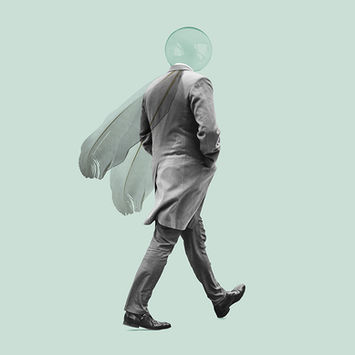 El autor nos invita a vivir lo imposible, inventando para todos nosotros un mundo nuevo. En mi opinión, sus fotomontages digitales son inteligentes, no tanto porque de cada palabra se extraigan dos imágenes y al unirlas con pegamento digital generen una nueva imagen, sin que ésta mantenga referencia alguna con el significado original, sino por su elaborado, exquisito diría yo, sabio y minucioso estudio de diseño compositivo entre las formas que va eligiendo, comprendiendo perfectamente el delicado universo que existe a la hora de componer. Es apabullante su control sobre el elemento positivo (figura) y el elemento negativo (fondo), contrastes complementarios y esa misteriosa energía positiva que desvela cada imagen desligada de su propio significado.